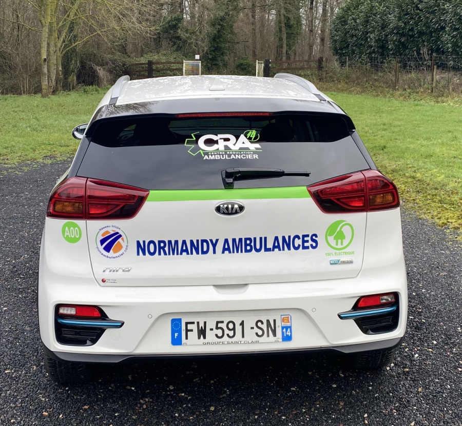 En partenariat avec KIA MOTORS situé à Hérouville Saint Clair, nous avons lancée en mars 2021 les tous premiers VSL électrique de la région Normande. Soucieux de l'environnement, nous recherchions une problématique pour réduire notre impact environnemental. Le véhicule électrique E-NIRO est tout confort, silencieux et agréable tant pour nos patients que pour nos ambulanciers.